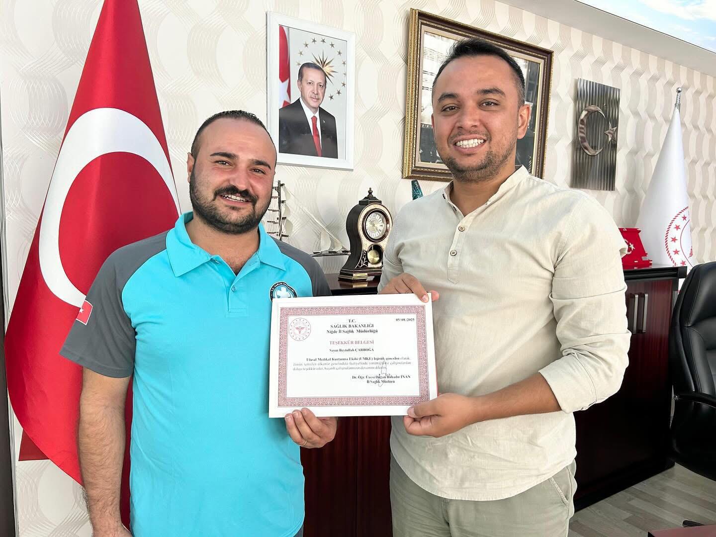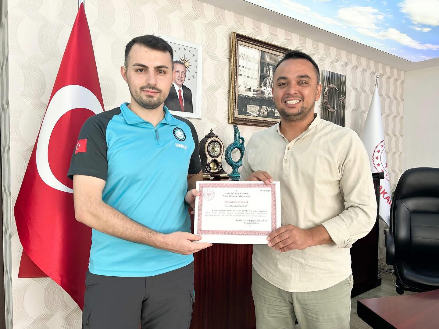 Her yıl 4-10 Ağustos tarihleri arasında kutlanan UMKE (Ulusal Medikal Kurtarma Ekibi) Haftası kapsamında, Niğde İl Sağlık Müdürlüğü bünyesinde görev yapan personele teşekkür belgeleri takdim edildi.