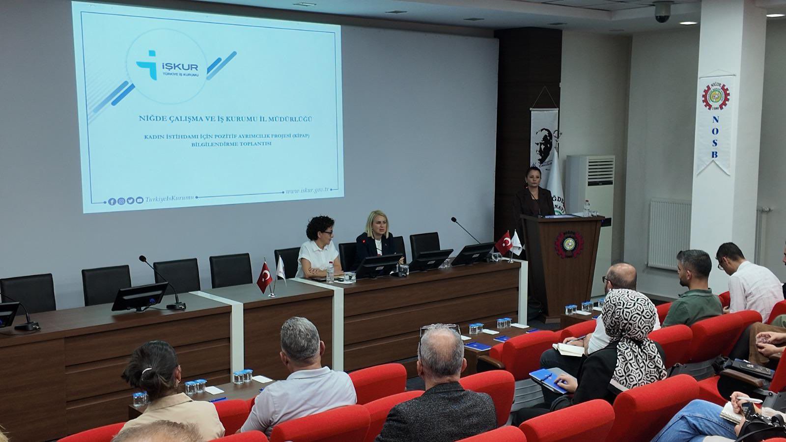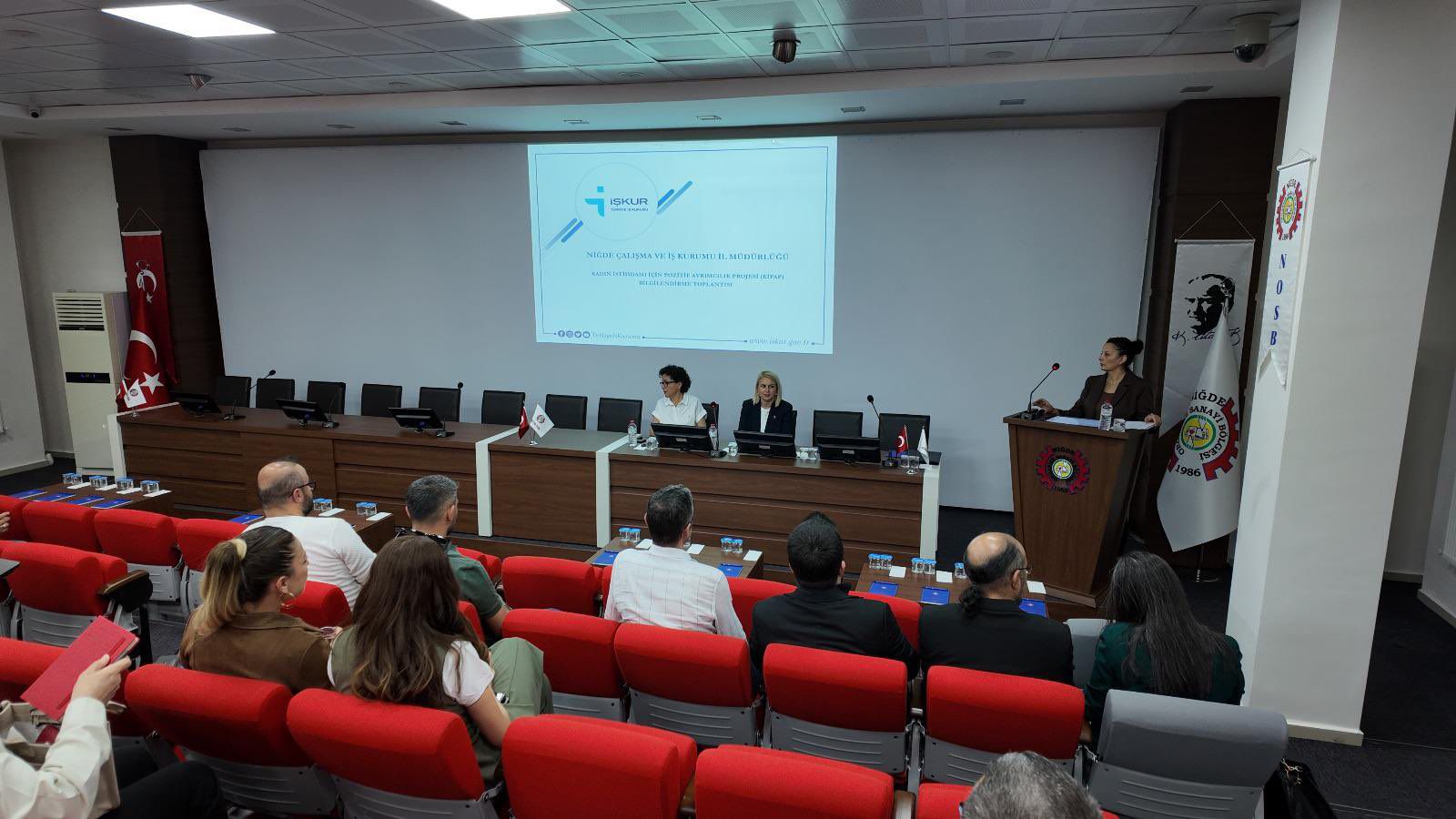 Toplantıda Niğde İŞKUR ve Niğde Ticaret ve Sanayi Odası temsilcileri, Kadın İstihdamı Pozitif Ayrımcılık Projesi (KİPAP) hakkında sanayicilere ve insan kaynakları uzmanlarına kapsamlı bilgiler aktardı.