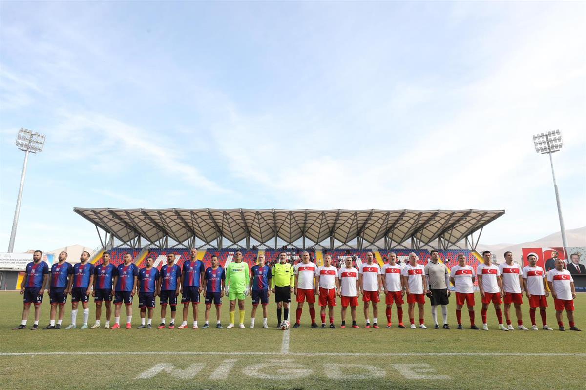 Saat 13.00’te başlayan özel maçta, Niğde Milletvekili Cevahir Uzkurt, Vali Cahit Çelik ve Niğde Belediye Başkanı Emrah Özdemir ile Avrupa Gol Kralı “Kral” Tanju Çolak ve Türk futbolunun unutulmaz frikik ustası “Bombacı” Hami Mandıralı başta olmak üzere; Ahmet Dursun, Yücel Çolak, Soner Boz, Cihan Haspolatlı, Dobi Hasan, Mehmet Yılmaz ve Orkun Uşak gibi bir döneme damga vurmuş isimler, Niğde Veteran Takımı’na karşı forma giydi.