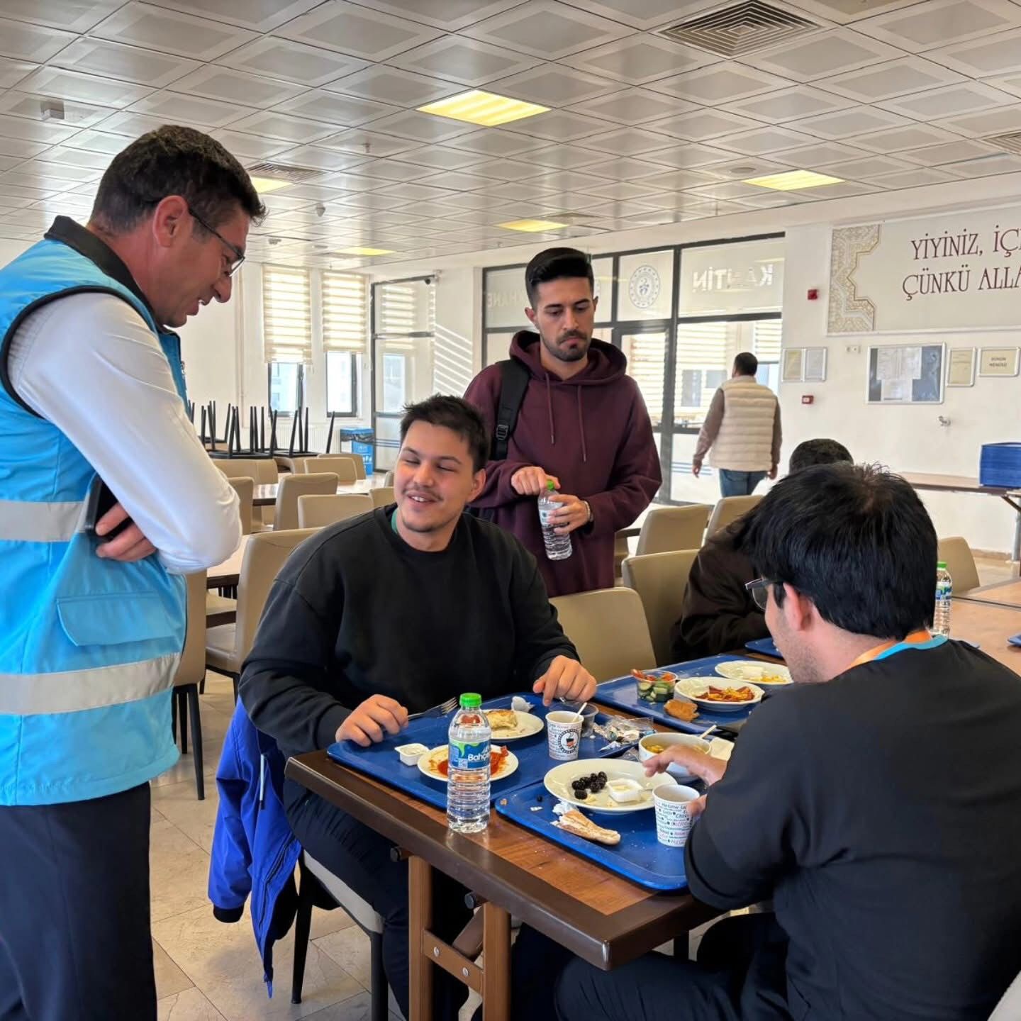Öğrenci yurtlarında yapılan denetimlerde yemekhane, mutfak ve ortak alanlar incelendi; ihtiyaç ve talepler değerlendirilerek iyileştirme adımları planlandı.