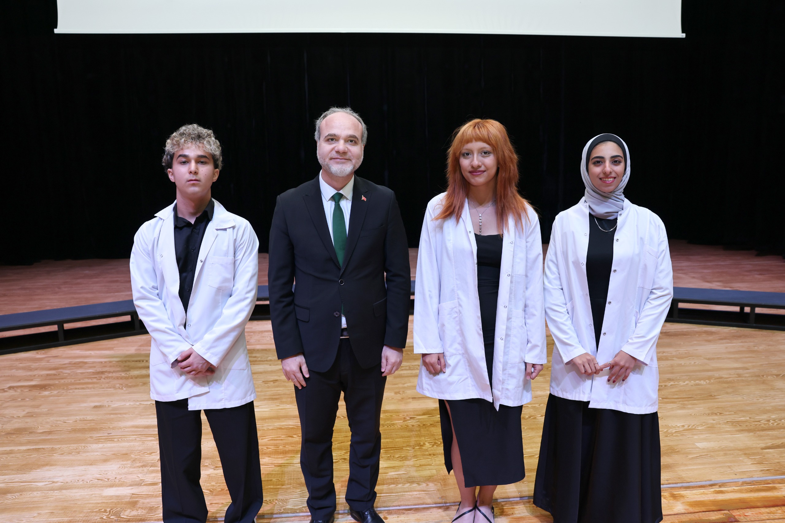 Program, öğrencilerin beyaz önlüklerini giymesi ve belge takdiminin ardından sona erdi.