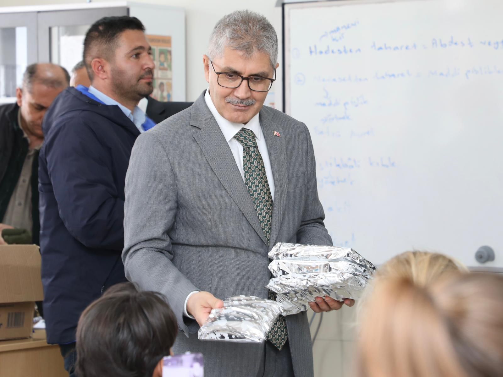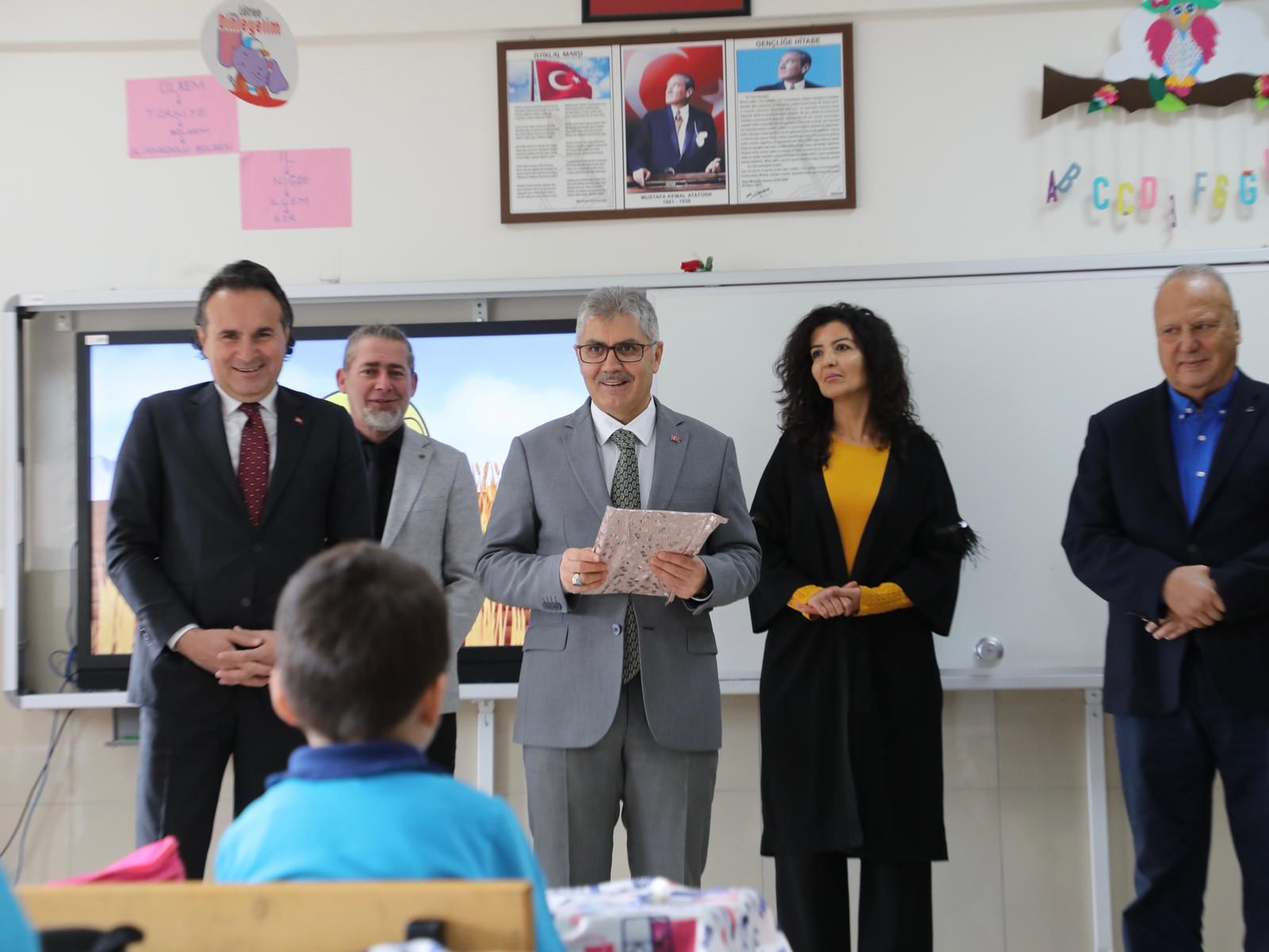 Öğrencilerin dersleri ve hedefleri üzerine sohbet eden Vali Çelik, başarı dileklerini ileterek öğrenciler için özenle hazırlanan küçük armağanlar takdim etti. Eğitimin yalnızca fiziki yapılarla değil, sevgi ve emekle güçlendiğini vurgulayan Vali Çelik, hayırsever katkılarının önemine dikkat çekti.