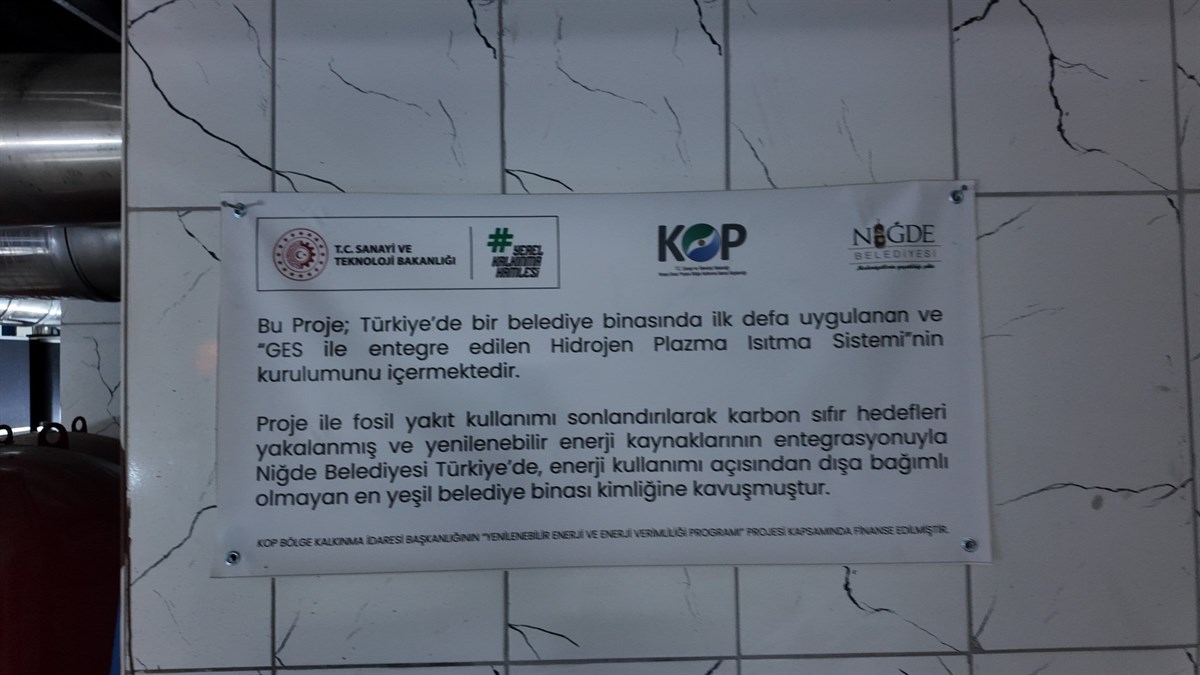 Niğde Belediyesi, hizmet binasında enerji ve ısınma ihtiyacını tamamen yerli ve yenilenebilir kaynaklardan karşılayan entegre bir sistemi devreye aldı. 198 kWp kurulu güce sahip çatı tipi Güneş Enerji Santrali (GES) ve çatıya yerleştirilecek 4 adet Rüzgar Enerji Sistemi ile modernize edilecek. Üretilen enerjinin kesintisiz kullanımını sağlamak amacıyla sisteme 420 kWh kapasiteli batarya depolama ünitesi entegre edildi. Isınma tarafında ise Türkiye’de bir belediye binasında ilk kez kullanılan hidrojenli kombi sistemi devreye alınarak binanın fosil yakıt bağımlılığı ortadan kaldırıldı. Teknolojik dönüşümle birlikte bina; kendi enerjisini üreten, depolayan ve ısıtma ihtiyacını sıfır karbon salımıyla karşılayan bağımsız bir yapı haline geldi.