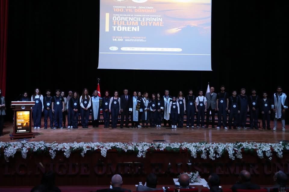 Niğde Ömer Halisdemir Üniversitesi Tarım Bilimleri ve Teknolojileri Fakültesi tarafından Tarımsal Eğitim ve Öğretimin 180. yılı kapsamında düzenlenen “Tulum Giyme Töreni”nde, birinci sınıf öğrencileri mesleklerine sembolik olarak ilk adımlarını attı.