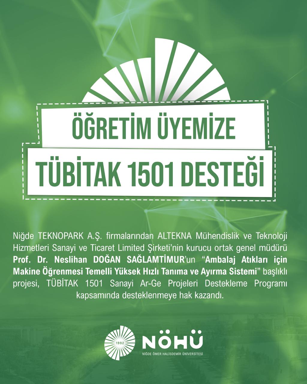 NÖHÜ ÖĞRETİM ÜYESİNİN PROJESİNE TÜBİTAK 1501 DESTEĞİ