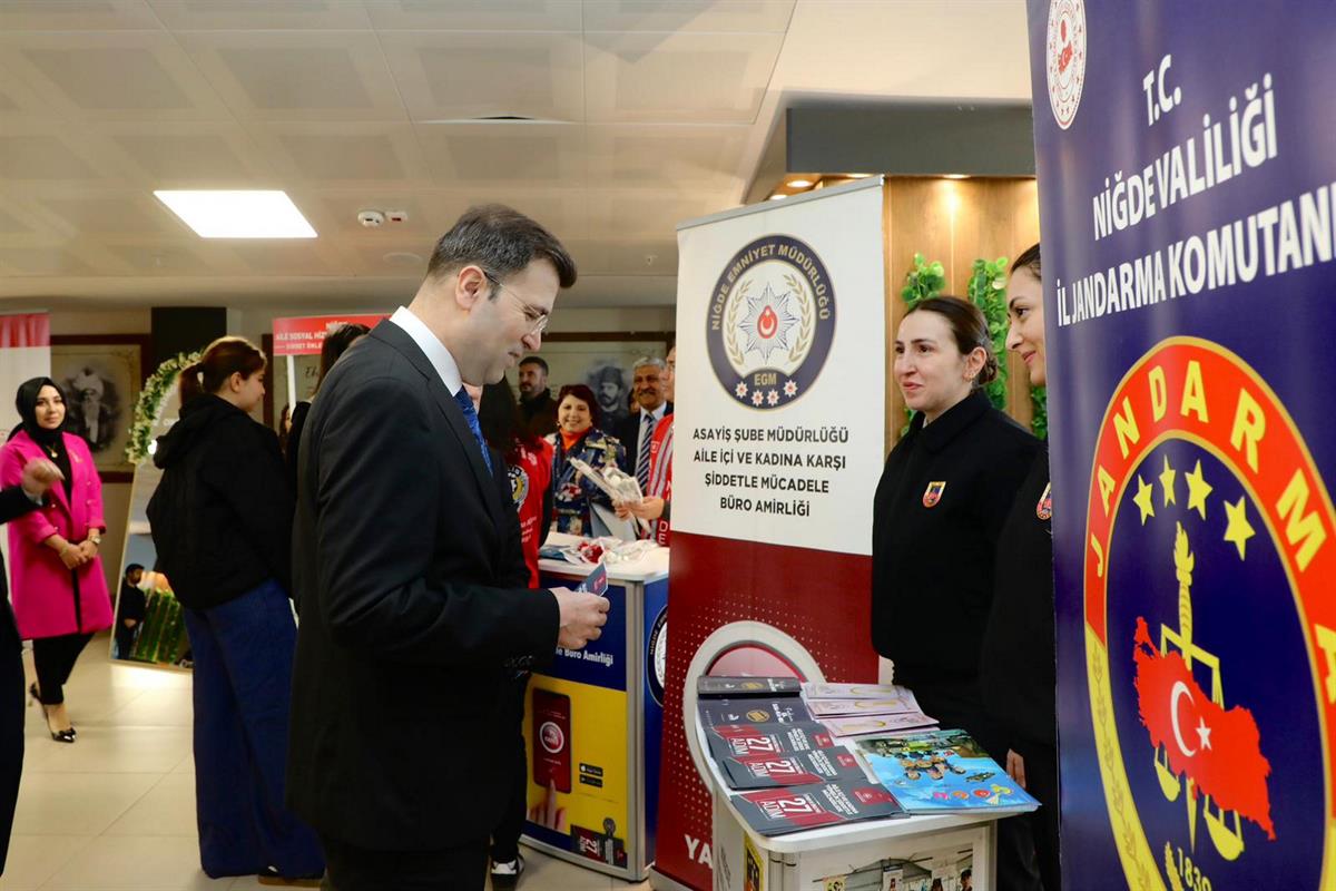 Niğde Belediyesi Hazım Tepeyran Kültür Merkezi’nde düzenlenen programın ardından, Aile ve Sosyal Hizmetler İl Müdürlüğü koordinesinde Tema Park AVM’de düzenlenen resim sergisi ile kadınların el emeği ürünlerinden oluşan sergi Vali Nedim Akmeşe ve eşi Hacer Akmeşe tarafından ziyaret edildi.