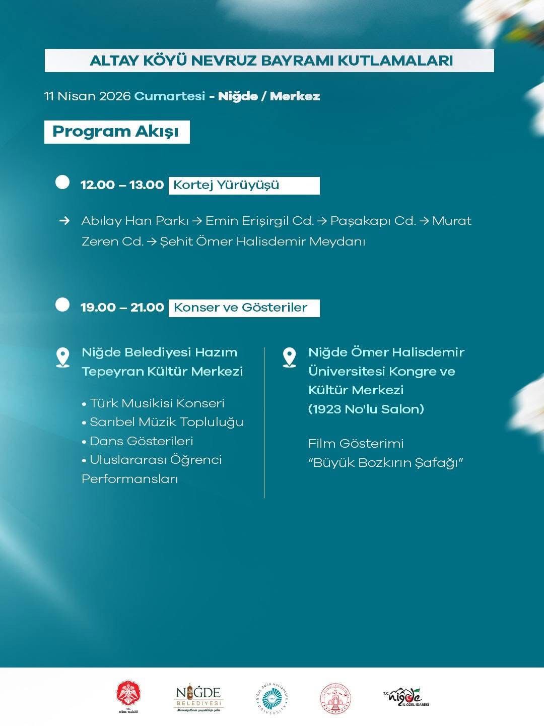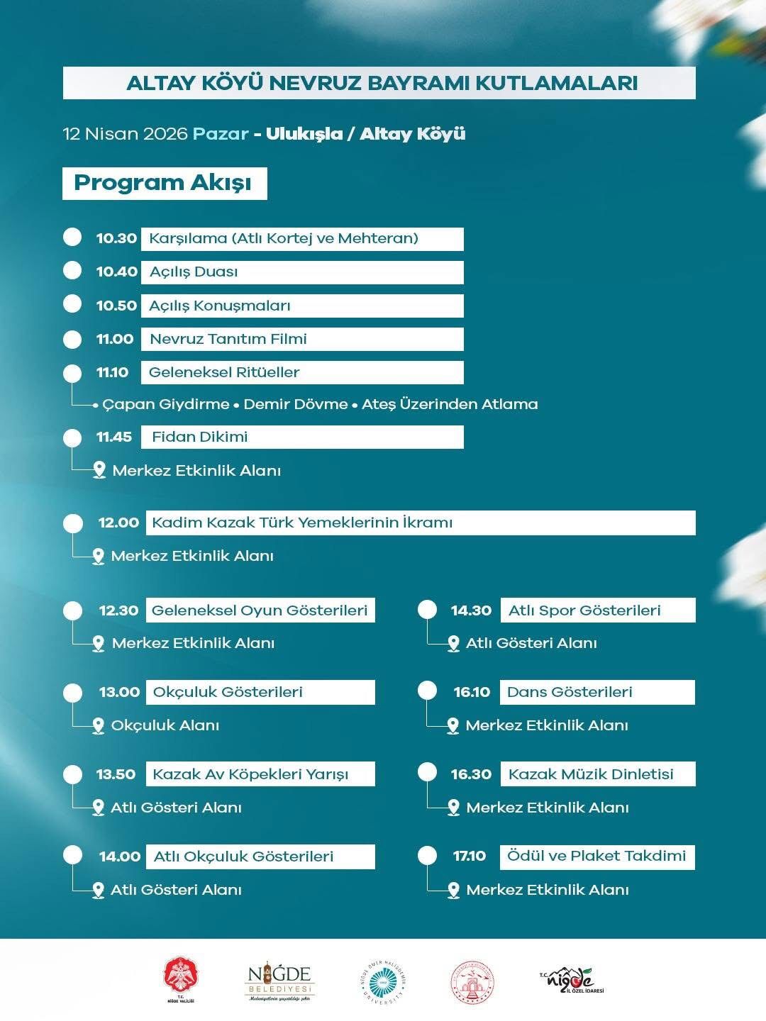 Vali Akmeşe açıklamasında, “Altaylardan Altay’a Niğde” ve “Köklerimizden Aldığımız Güçle Altay’da Birlikte” ifadeleriyle bu anlamlı buluşmanın kültürel önemine vurgu yaparak tüm vatandaşları Nevruz Bayramı kutlamalarına davet etti.